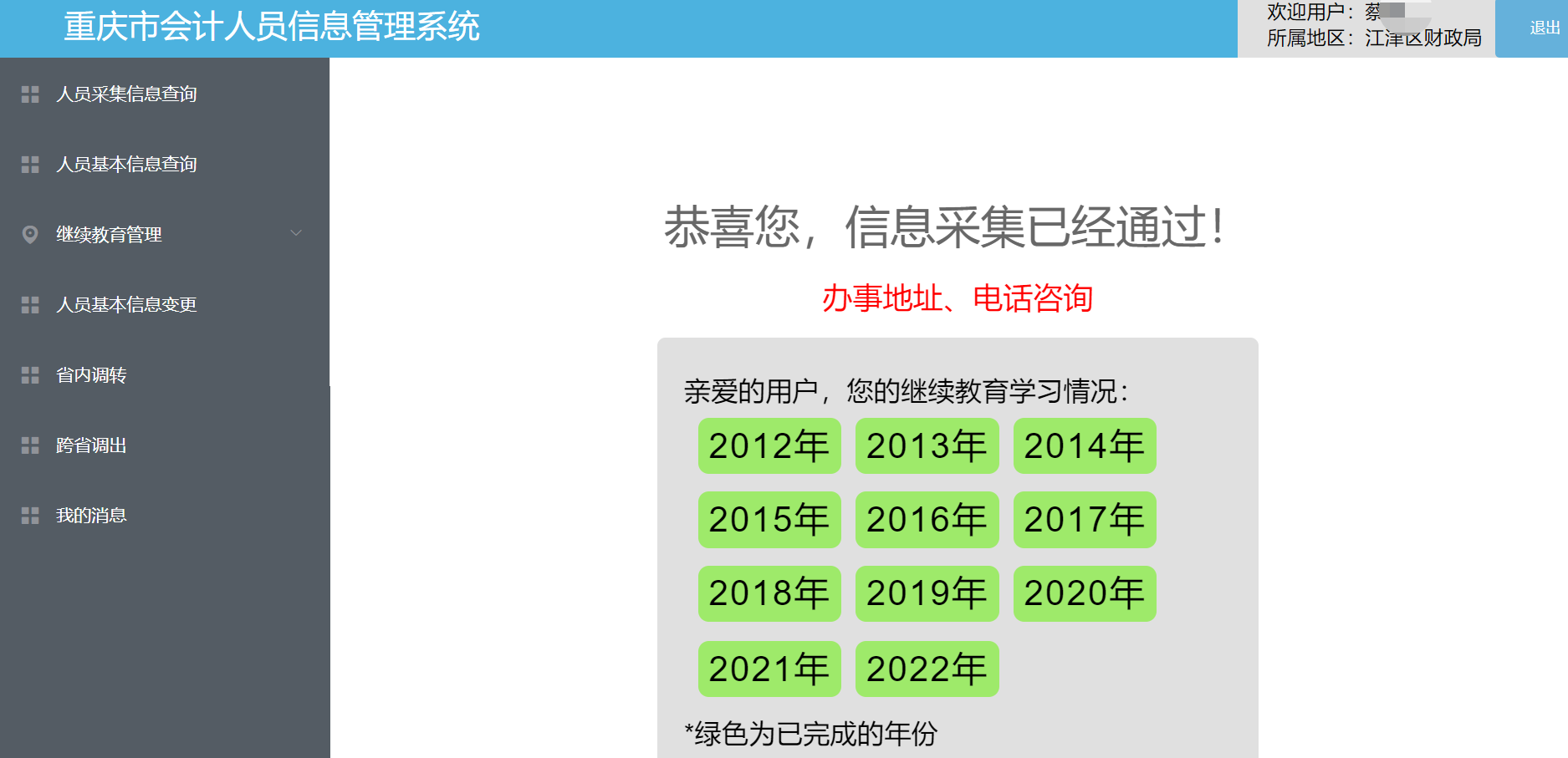 如果已经进行了信息采集,直接登录:重庆会计人员继续教育网站